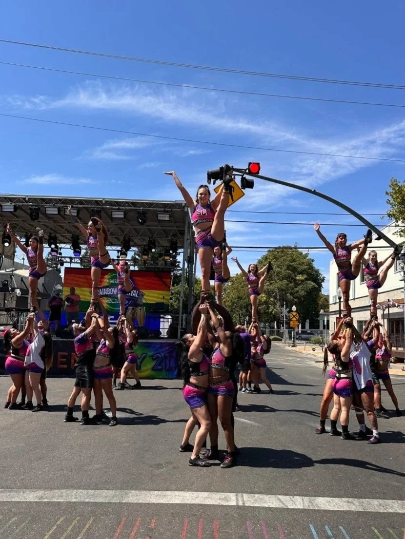 Our athletes practice once a week in the evenings at a Sacramento cheerleading gym. Open gyms are also offered to work on skills or try something new. SCE performs at various parades and events throughout our season, which starts in August and culminates in our pride showcase in Sacramento and San Francisco at the end of June. Athletes are also asked to participate in non-performing events to support our LGBT community partners.